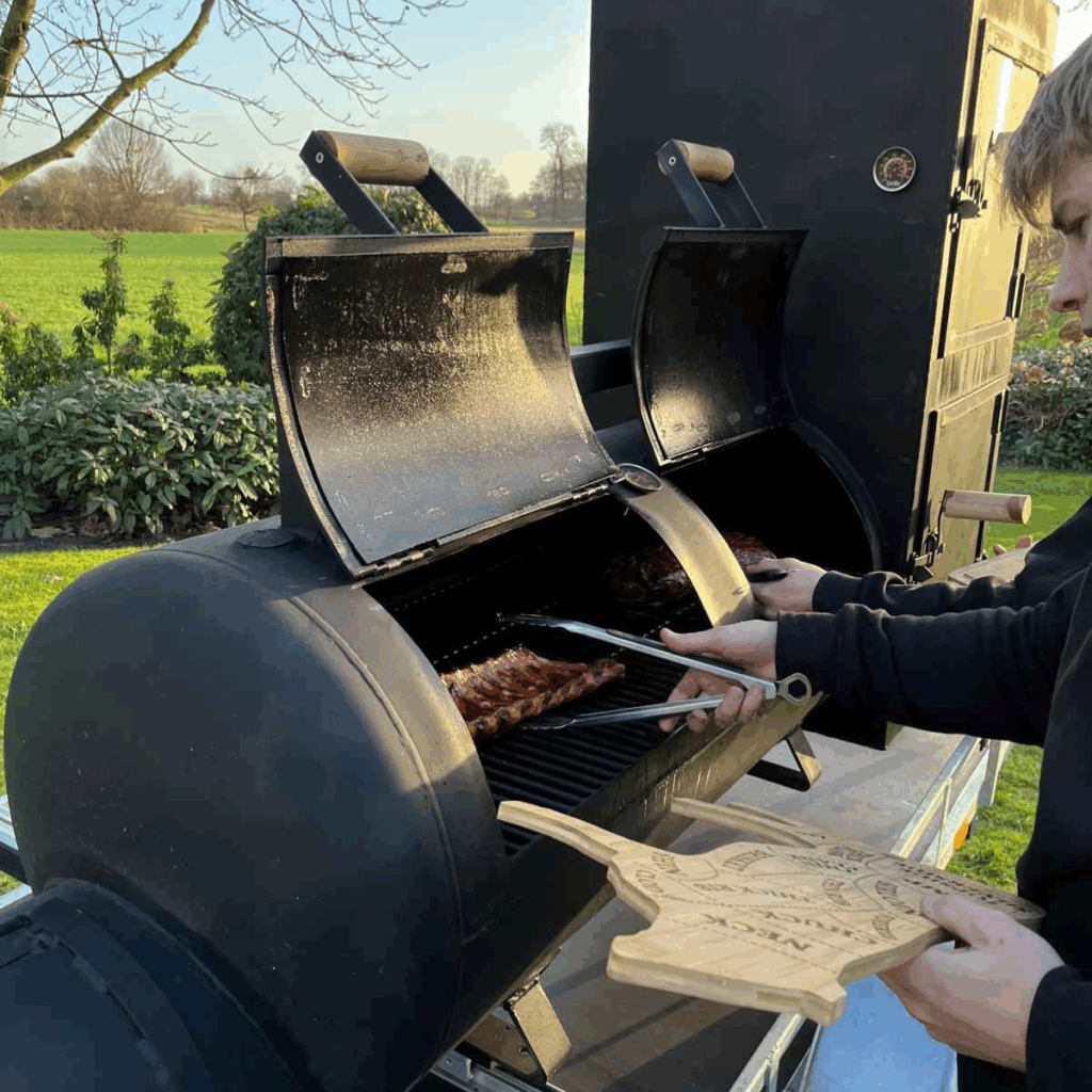 Mijn speciaal gebouwde smoker BBQ’s zijn met liefde ontworpen om het beste uit vlees, groenten en zelfs desserts te halen. Alles wordt vers en met aandacht bereid geen standaard pakketten of supermarktspul, maar échte smaken die recht uit het vuur komen.